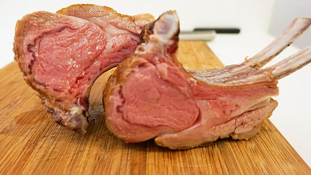 1.仔羊の背肉を掃除します。動画では骨露出のない物を使いましたが、あらかじめ取ってあるものを購入したほうが楽ですね。色々タイプがありますので購入時は注意してください。